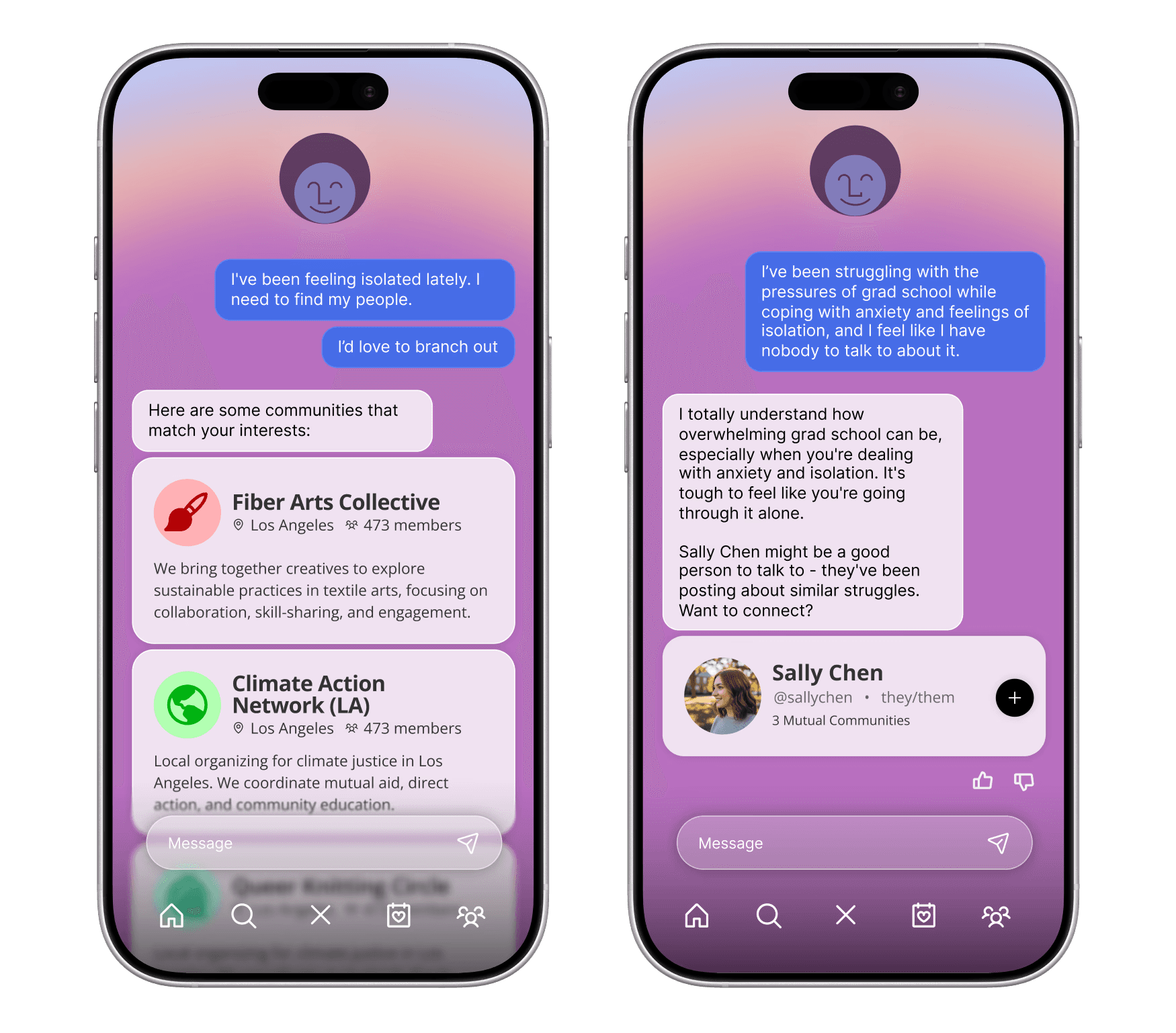 While most social platforms optimize for persistent engagement, Humma does the opposite. Built for vulnerable communities, it removes likes, follower counts, and infinite scroll entirely. My job was translating those principles into real experiences.