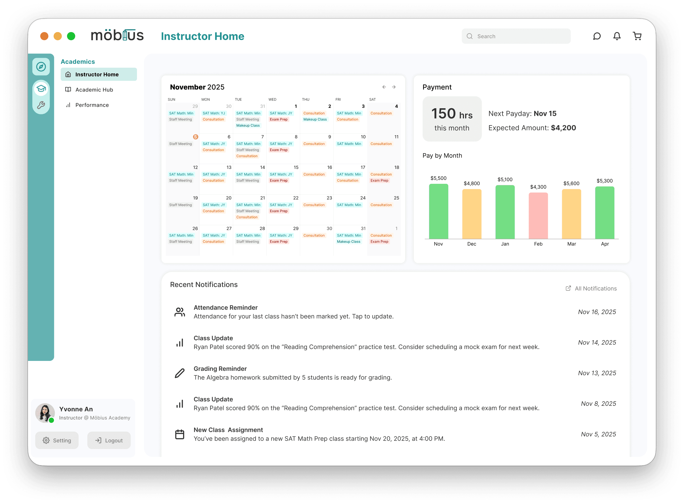 Problem: Teachers don't just teach - they also schedule, message, manage rosters, and track finances. Without clear separation, the original interface became cluttered and required a high cognitive load.